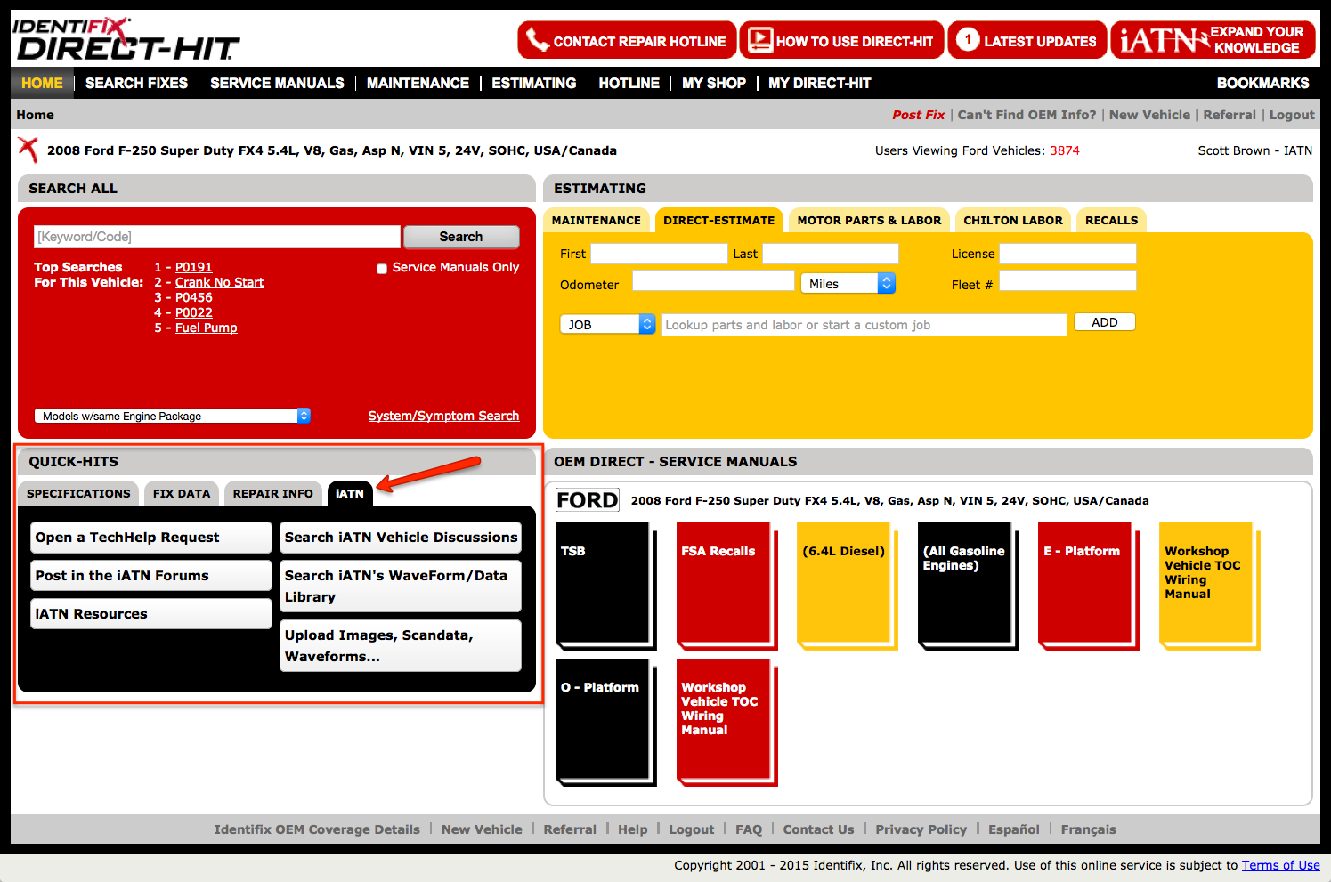 As of March 28th, 2015, users of Direct-Hit can now seamless link to iATN using the same vehicle/powertrain.