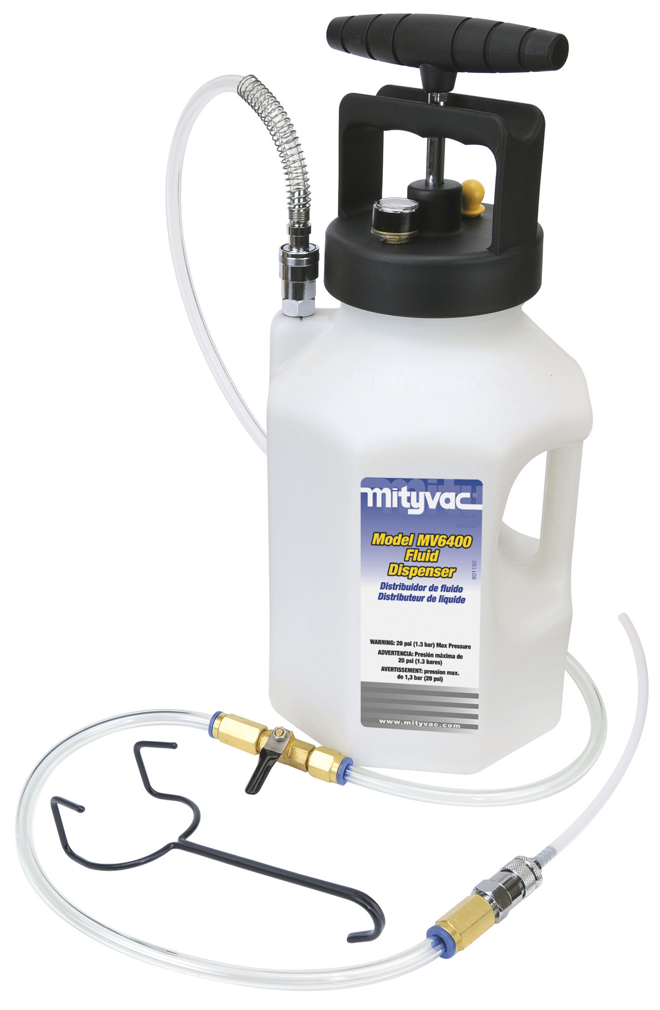 The MV6400 Fluid Dispensing System is designed for topping-off fluid reservoirs including master cylinders, gear boxes, transmissions, power steering reservoirs, etc.